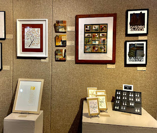 **Cecelia brought in several pieces from Mike Gold’s on-line class using jelly prints and Tec inks.
